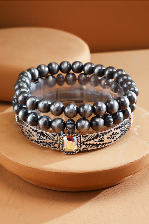 3 Layered Navajo and Glass Stone Stretch Bracelet